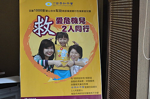 另外還有這一個活動,更詳細介紹可至http://www.worldpeace.org.tw/kidshelp/client-s2.php?id=27&&pc_id=4&Page=1