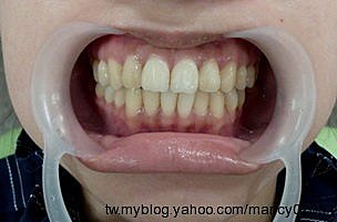 接著小護士就會照相做記錄了,我自己其實拍了幾十張,但是只放兩張,因為真的太醜了,哈哈哈哈牙齒要被套上一種透明的模具,讓整個牙齒結構完全曝露,嘴巴已經夠大了,這樣一撐感覺大了N倍,大餅吞拳頭算啥,我都能把膝蓋吞進去了我。