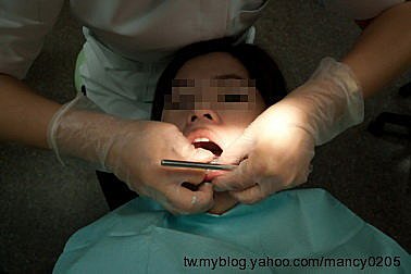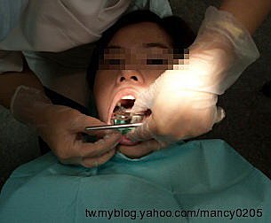 看過我的開眼頭實錄,應該就知道我是一個很怕痛,愛鬼叫的人,怕痛程度真的很低...而我第一次去初診,跟醫生說明我要矯正後,她就有告知如果要矯正,必須把所有蛀牙都補好,我蛀牙不多,有的也淺淺的,但是門牙有一顆,是很年輕的時候蛀牙,不過沒補好,看起來還髒髒的這樣。醫生就主動說要幫我把它弄開重新補漂亮一點,補漂亮一點當然好阿,但是補門牙真是草泥馬的痛阿!痛到我一直吱吱叫,就是嘴巴裡面有口水的洛洛聲,硬是加上吱吱聲,就變成嘰咕嘰咕嘰咕....(誤)一邊叫,雙手還一直比暫停暫停...丟臉死了,但就真的痛阿,後來醫生就有貼心的,踩一下等轉速慢一點(註),用慢速的鑽...慢速的鑽起來就比較沒那麼痛,而且為了安撫我,她還會說數三秒哦再一下下哦之類的話,讓我安心。而且補完牙,還會幫我拋光打亮,記得以前去補牙都沒有牙醫說過拋光跟打亮這些字眼...打亮好像就是擦一種乳白色膏狀物在牙齒上面,然後用一種狀似橡皮擦的東西,高速的磨,磨一磨就變好亮喔!