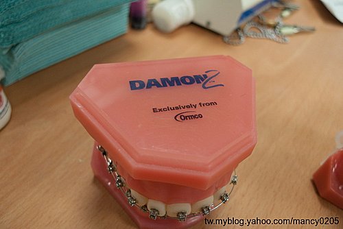 就是一種自鎖性矯正器,傳統的矯正器則是橡皮圈固定式的,所以才會常常看到七彩像皮圈的牙套...使用橡皮圈固定式的矯正法,因為橡皮圈與矯正線會產生摩擦,產生阻力影響牙齒的移動,所以橡皮圈式的矯正器痛感比較大之外,速度也比較慢一些。戴蒙矯正器因為不需橡皮圈固定,只需將矯正線,放進上下中間的凹槽,然後關上凹槽,牙齒移動時牽引力就小很多,那相對的疼痛感就會降低,而且牙齒移動的速度也會比傳統的快一些哦!